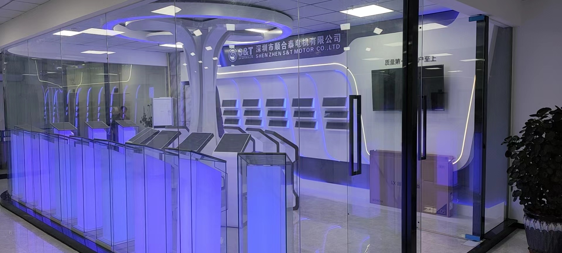 我们做了深圳市顺合泰电机有限公司的企业展厅设计施工,顺合泰电机是做电机风扇的,产品都是很小的尺寸,也可以说是产品展厅设计了,因为里面摆放的都是产品。