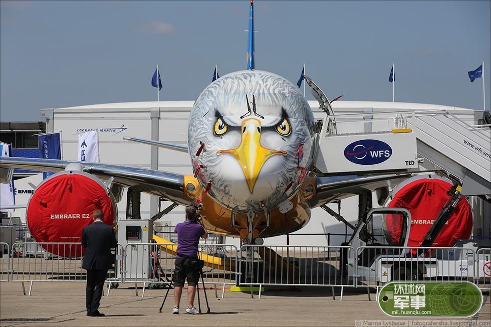 这次展览会大部分以运输机为主“”巴西空军KC-390运输机,乌克兰安-132运输机,空客A400M运输机“”,巴西KC390运输机,指的是由巴西航空工业生产的最大型运输机。KC-390是一款用于运送部队和补给的运输机,同时也可执行搜救、森林火灾救险等任务,可运输26吨货物,时速可达850公里,还有一些货机,武装直升机等,比如洛马LM-100J货机,虎式武装直升机,值得一提的就是巴西航E195-E2客机,工作人员将其飞机的造型喷成了一只老鹰,吸引了大批的观众。